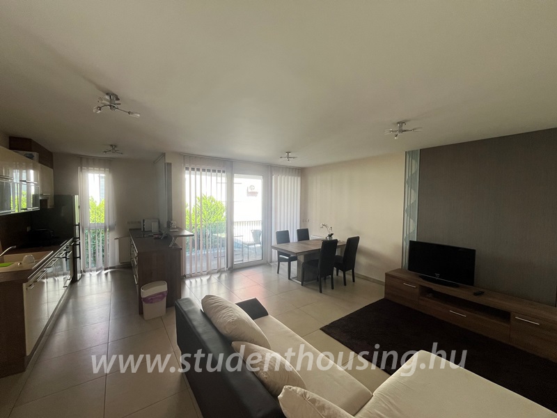 Pécs-Egyetemvárosban, szigetelt, új építésű társasház 1. emeletén, 75 nm-es, erkéllyel, konyha- étkező-nappali + 2 hálószobás, teljesen új, dizájn bútorokkal berendezett és felszerelt, exclusive kialakítású és állapotú,cirkó fűtéses, rendkívül alacsony rezsivel bíró, ízléses és elegáns luxuslakás teljes berendezéssel kiadó.